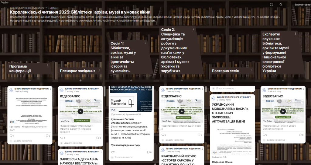 22-23 жовтня 2025 року заступник начальника відділу інформації, використання документів та документального забезпечення Олена Сафонова взяла участь у ХХVІІІ Всеукраїнській науково-практичній конференції «Короленківські читання» за темою «Бібліотеки, архіви, музеї в умовах війни», де виступила з доповіддю “Український мовознавець Василь Степанович Зборовець: актуалізація імені”.